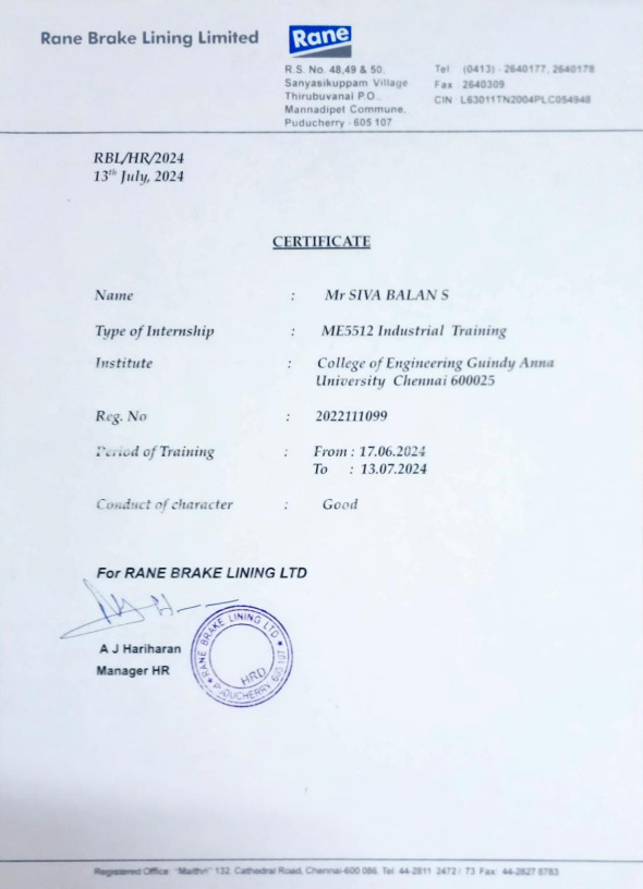 I am a Mechanical Engineering student at CEG, Anna University, with a strong foundation in design, simulation, and manufacturing. My experience spans supply chain, quality, and new product development through internships and technical projects, supported by skills in CAD/CAE, CFD, data analytics, and AI. I'm a proactive learner and team player, thrive in motorsports, R&D, and innovation-driven environments, aiming to engineer impactful solutions that bridge mechanical systems with digital intelligence.